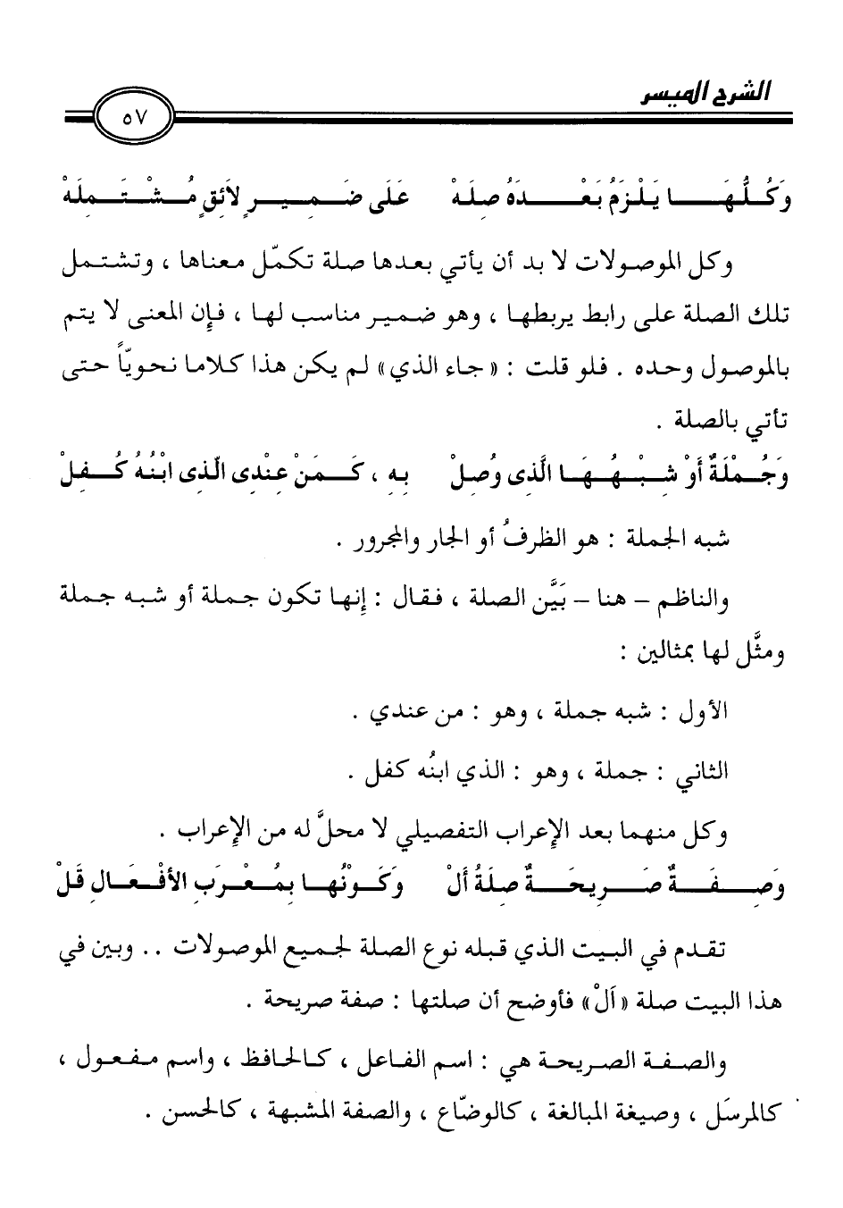 تقدم في البيت الذي قبله نوع الصلة لجميع الموصولات. . وبين في