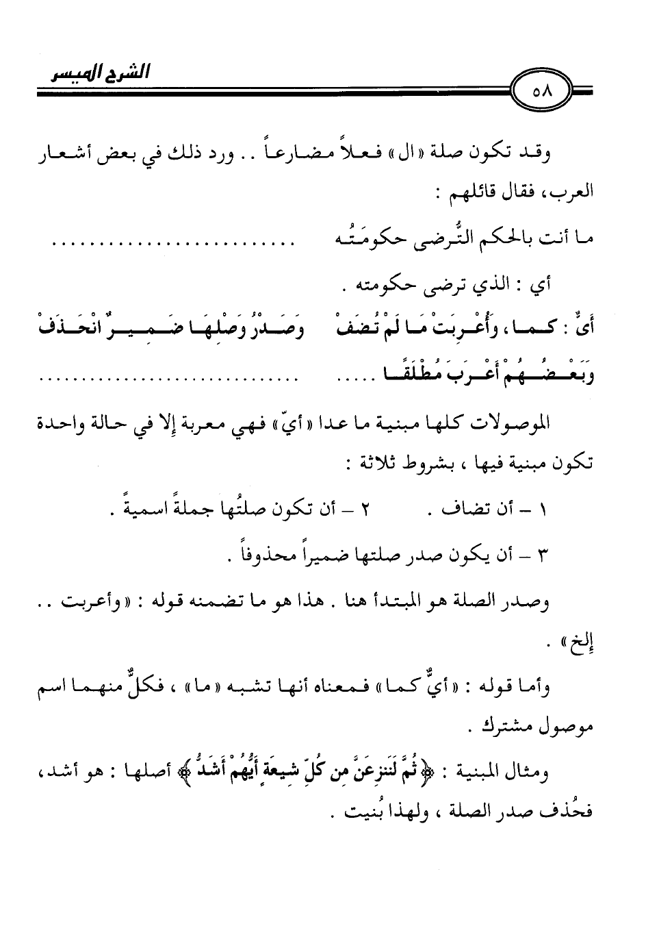 أَىّ: كما، وَاعْرِبَتْ مَا لَمْ تُضفْ وَصَدْرُ وَصْلِهَا ضَمِيرٌ انْحَذَفْ
