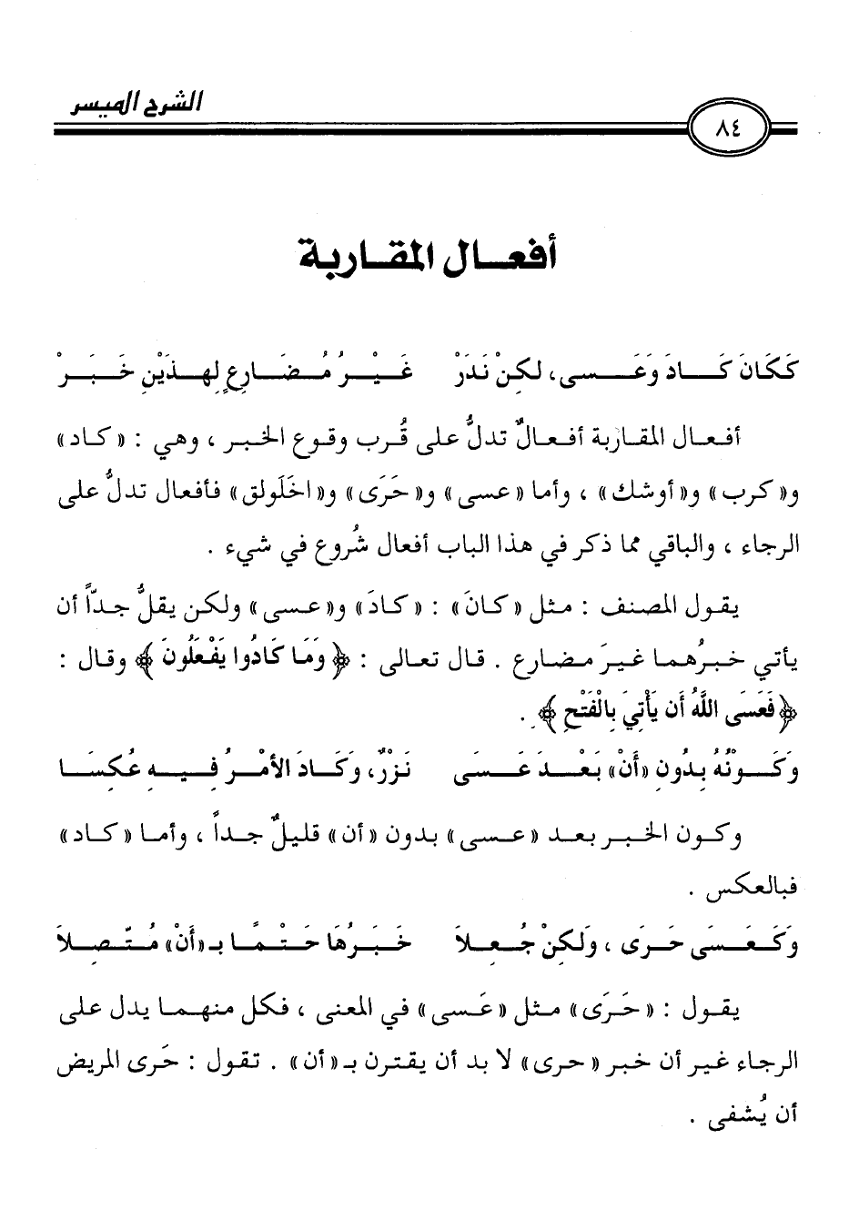 ي! ول المصنف: مثل ((كانَ ": ((كادَ " و" عسى " ولكن يقلّ جدّاً أ ن
