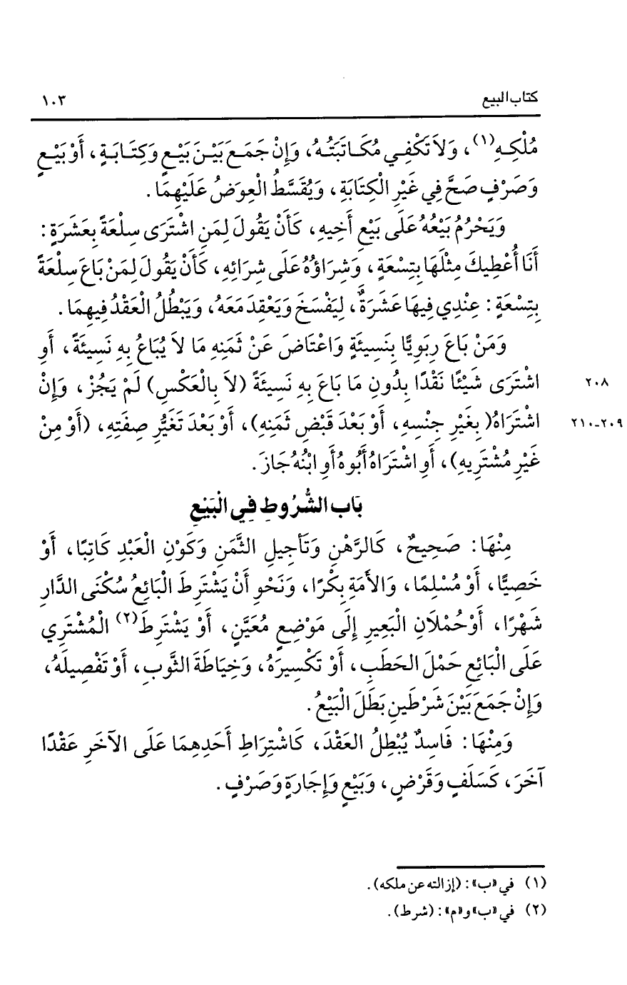 منها: صحيح كالرهن المعين وتأجيل ثمن وكون العبد كاتبا أو خصيا أو مسلما والأمة بكرا ونحو أن يشترط البائع سكنى الدار شهرا وحملان البعير إلى موضع معين أو يشترط1 المشتري على البائع كحمل الحطب أو تكسيره أو خياطة الثوب أو تفصيله وان جمع بين شرطين بطل البيع.