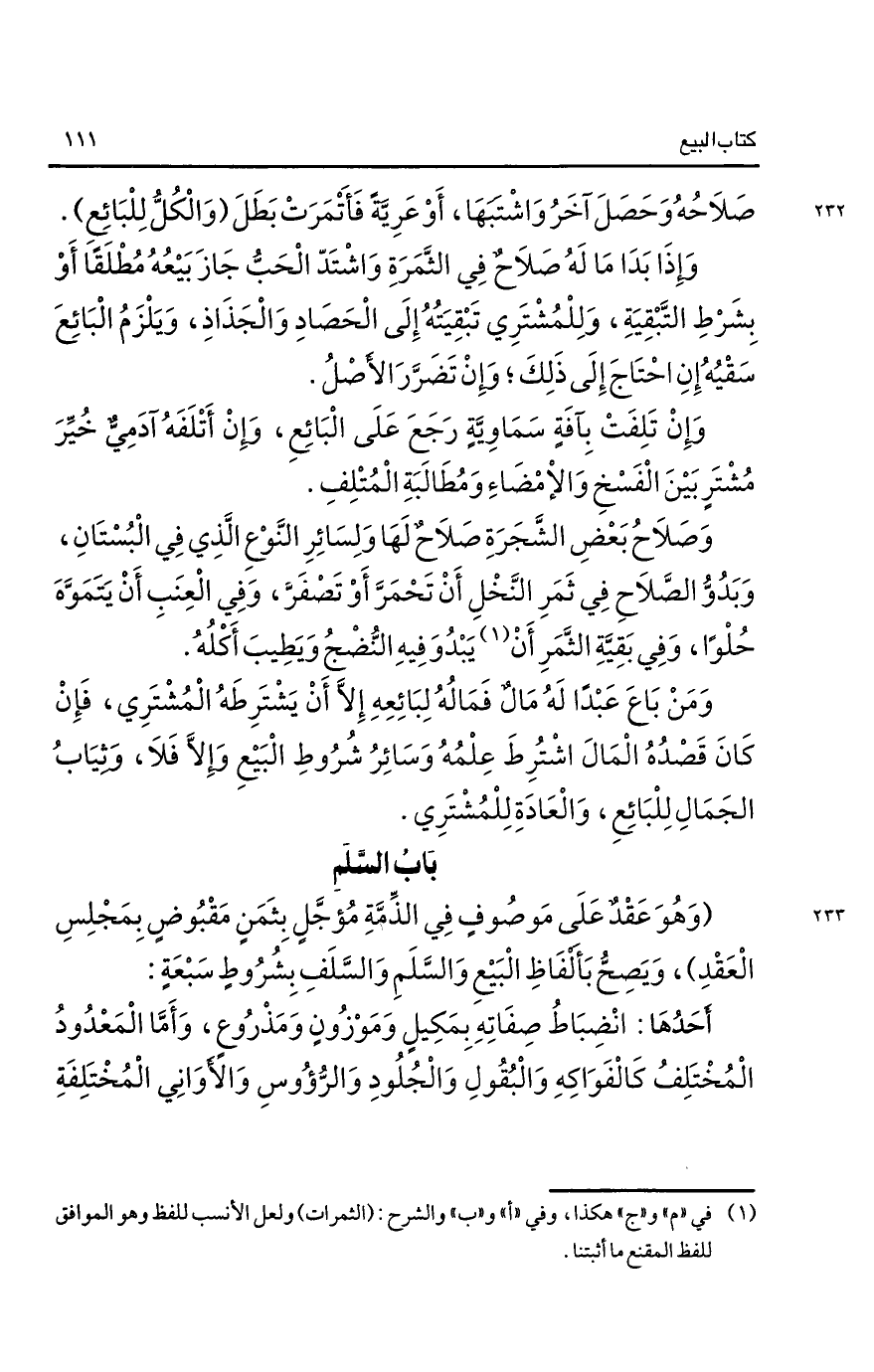 1في "م" و "ج" هكذا، وفي "أ" و "ب" والشرح: الثمرات ولعل الأنسب للفظ وهو الموافق للفظ المقنع ما أثبتنا.