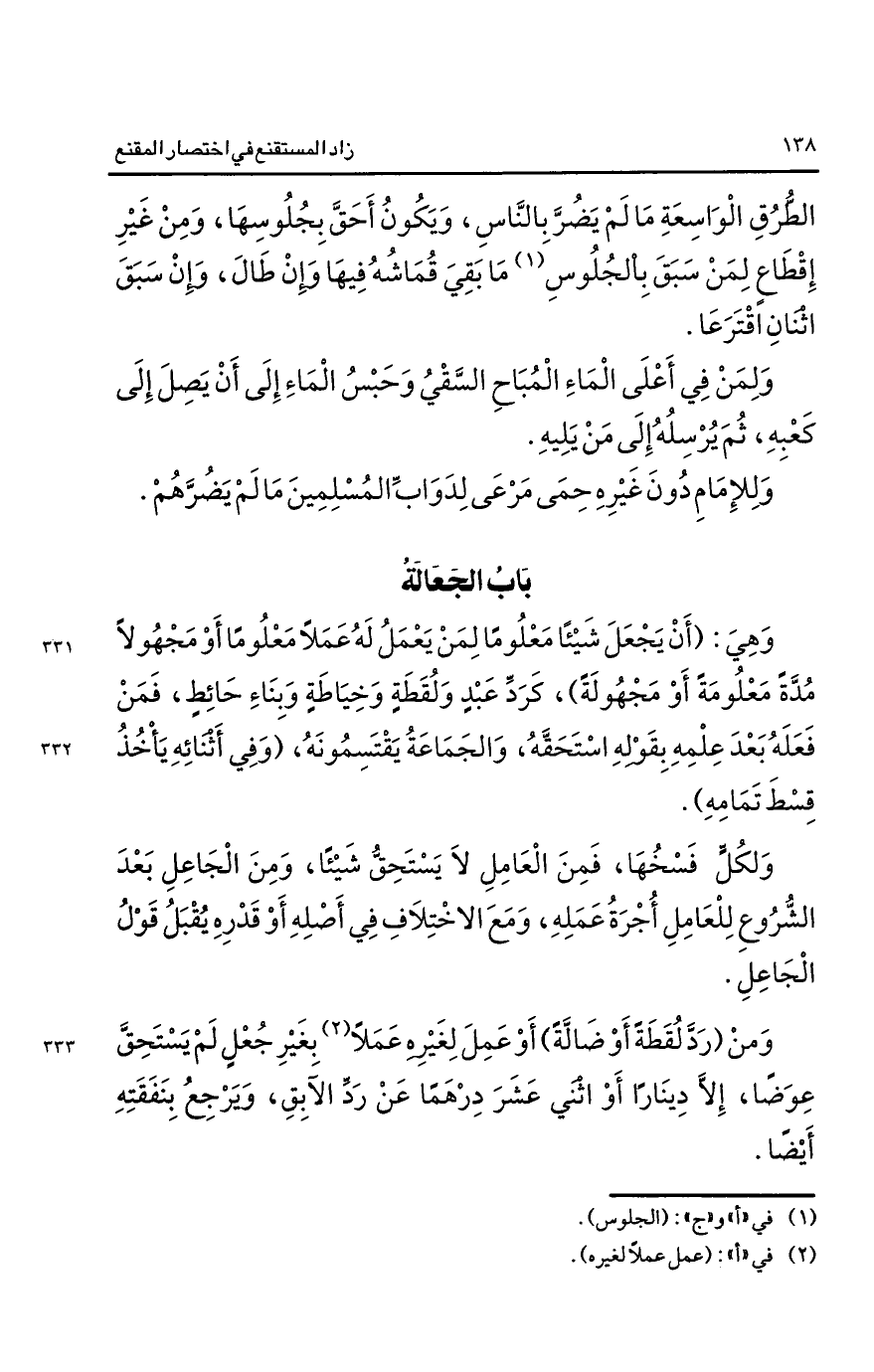 وهي: "أن يجعل شيئا معلوما لمن يعمل له عملا معلوما أو مجهولا مدة معلومة أو مجهولة" كرد عبد ولقطة وخياطة وبناء حائط فمن فعل بعد علمه بقوله استحقه والجماعة يقتسمونه, "وفي أثنائه يأخذ قسط تمامه".