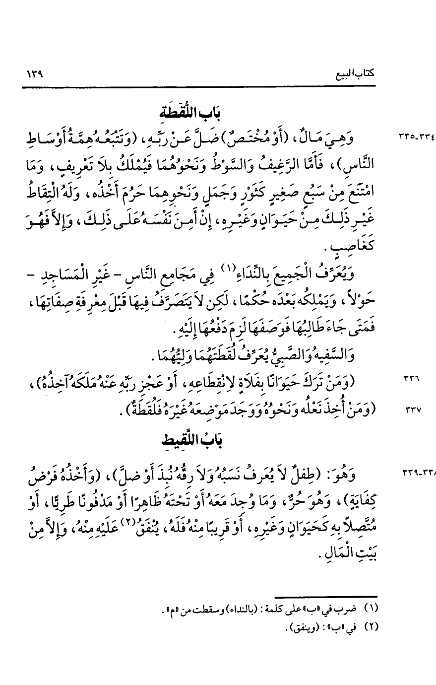 "ومن ترك حيوانا بفلاة لانقطاعه أو عجز ربه عنه ملكه آخذه", "ومن أخذ نعله ونحوه ووجد موضعه غيره فلقطة".