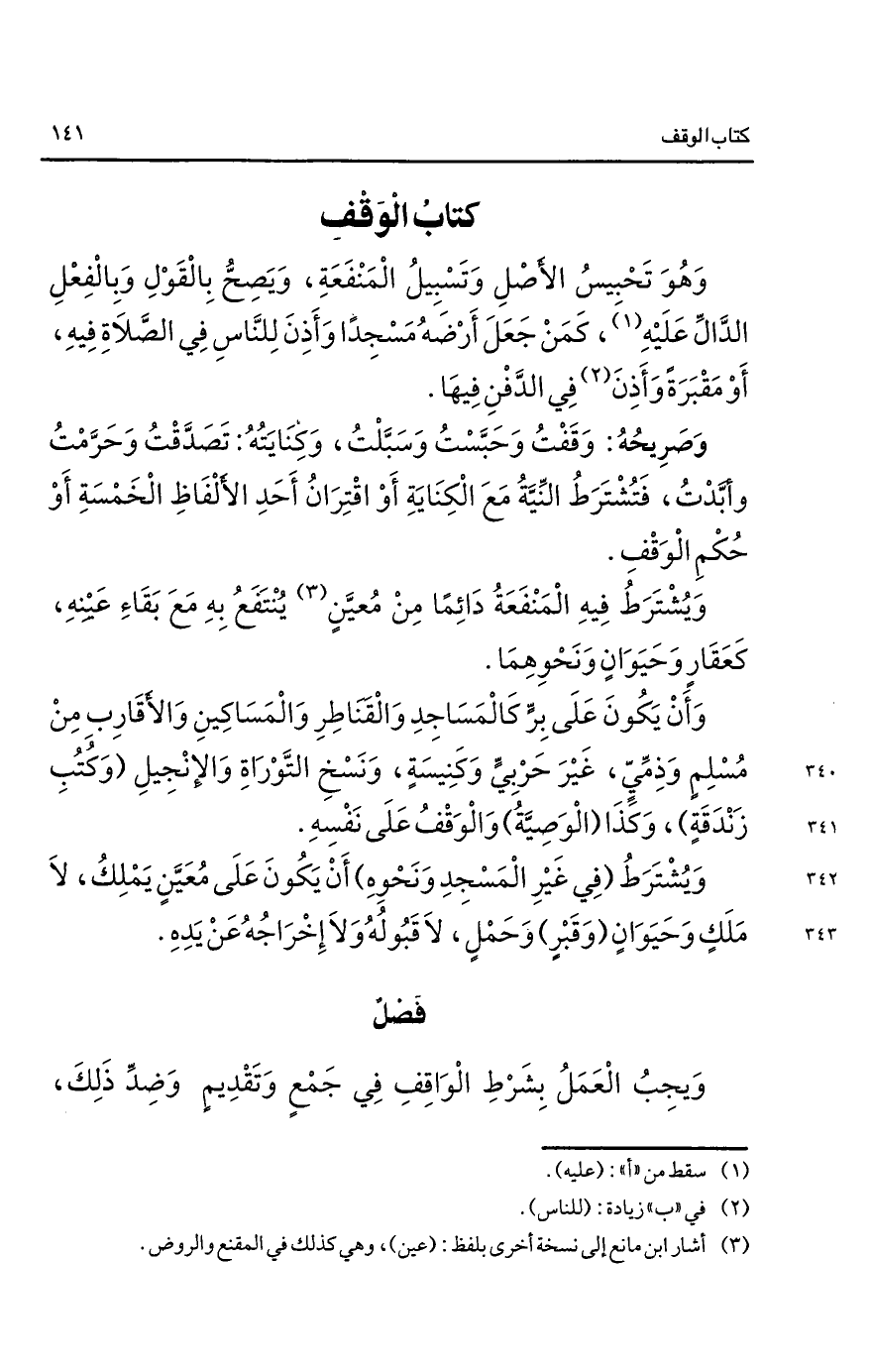 3 أشار ابن مانع إلى نسخة أخرى بلفظ: عين، وهي كذلك في المقنع والروض.