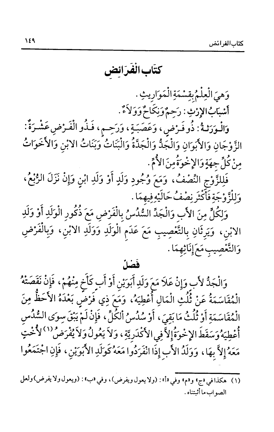 1هكذا في "ج" و "م" وفي "أ": ولا يعول ويفرض، وفي "ب": يعول ولا يفرض ولعل الصواب ما أثبتناه.