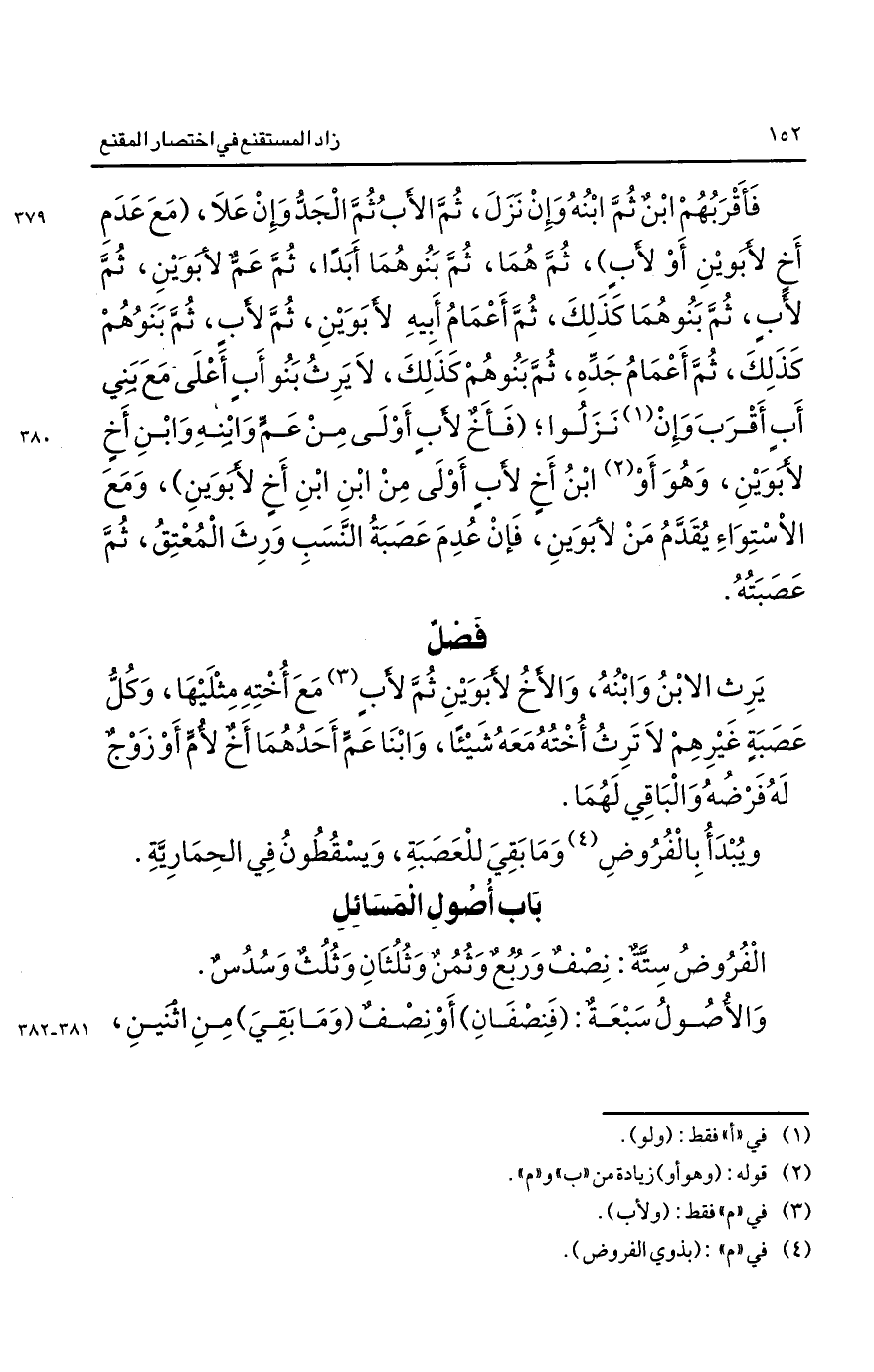 يرث الابن وابنه والأخ لأبوين ثم لأب3 مع أخته مثليها وكل عصبة غيرهم لا ترث أخته معه شيئا وابنا عم أحدهما أخ لأم أو زوج له فرضه والباقي لهما.