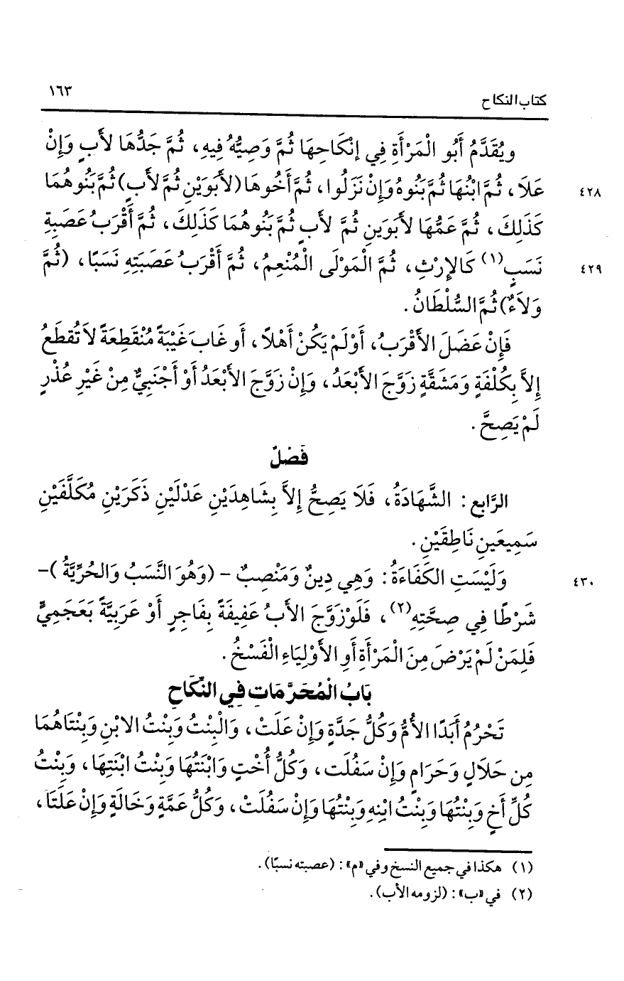 وليست الكفاءة: وهي دين ومنصب "وهو النسب والحرية" شرطا في صحته2 فلو زوج الأب عفيفة بفاجر أو عربية بعجمي فلمن لم يرضى من الزوجة أو الأولياء الفسخ.