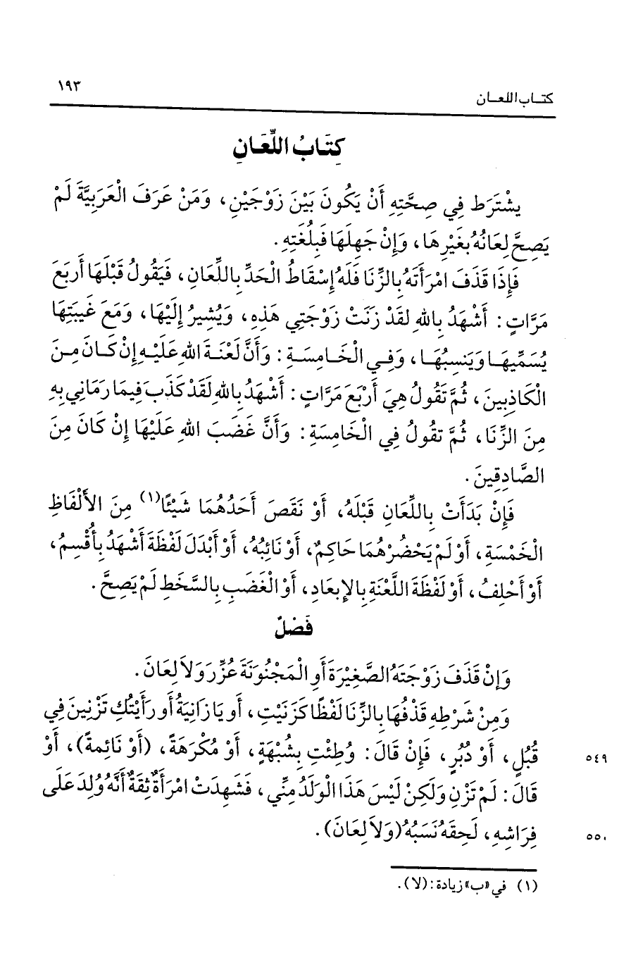 يشترط في صحته أن يكون بين زوجين ومن عرف العربية لم يصح لعانه بغيرها وإن جهلها فبلغته.