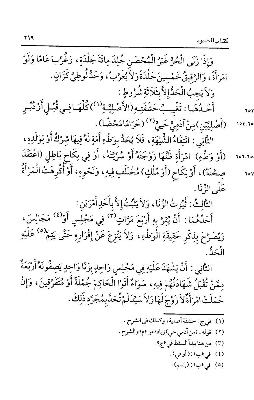 أحدها: تغييب حشفته "الأصلية1" كلها في قبل أو دبر "أصليين" من آدمي حيي2 "حراما محضا".