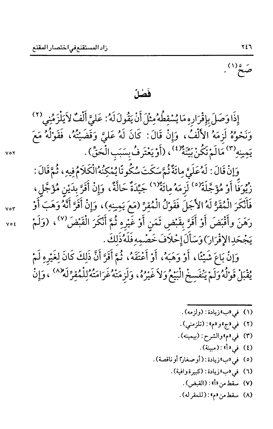 وإن قال: له علي مائة ثم سكت سكونا يمكنه الكلام فيه ثم قال: زيوفا أو مؤجلة5 لزمه مائة6 جيدة حالة وإن أقر بدين مؤجل فأنكر المقر له الأجل فقول المقر "مع يمينه" وإن أقر أنه وهب أو رهن وأقبض أو أقر بقبض ثمن أو غيره ثم أنكر القبض7 "ولم يجحد الإقرار" وسأل إحلاف خصمه فله ذلك.
