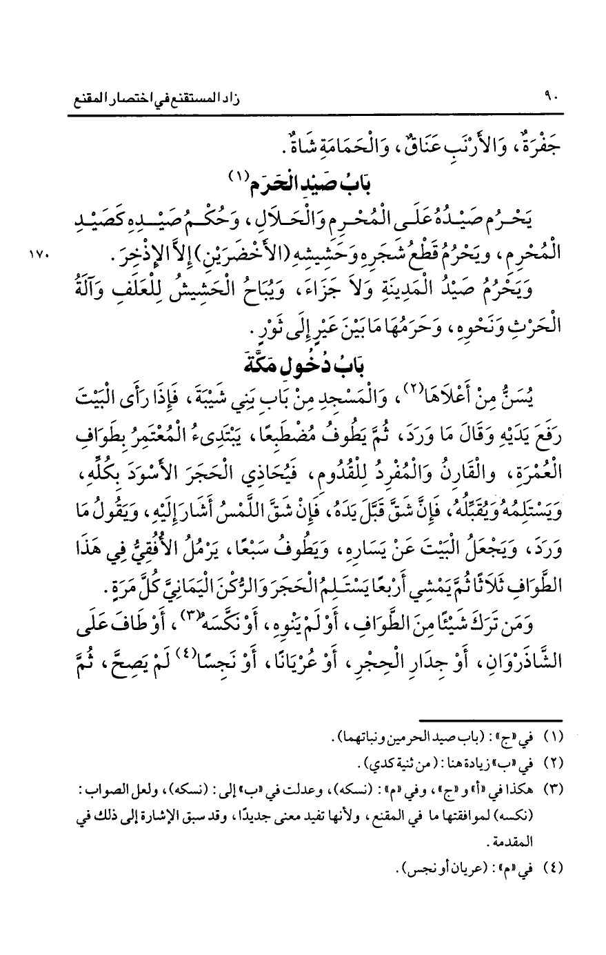 2 هكذا في "أ" و "ج", وفي "م": "نسكه", وعدلت في "ب" إلى: "نسكه", ولعل الصواب: "نسكه" لموافقتها ما في المقنع, ولأنها تفيد معنى جديدا, وقد سبق الإشارة إلى ذلك في المقدمة.
