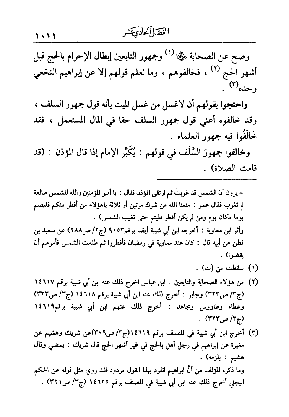 (¬٢) من هؤلاء الصحابة والتابعين: ابن عباس أخرج ذلك عنه ابن أبي شيبة برقم ١٤٦١٧ (ج ٣/ ص ٣٢٣) وجابر: أخرج ذلك عنه ابن أبي شيبة برقم ١٤٦١٨ (ج ٣/ ص ٣٢٣) وعطاء وطاووس ومجاهد: أخرج ذلك عنهم ابن أبي شيبة برقم ١٤٦١٩ (ج ٣/ ص ٣٢٣).