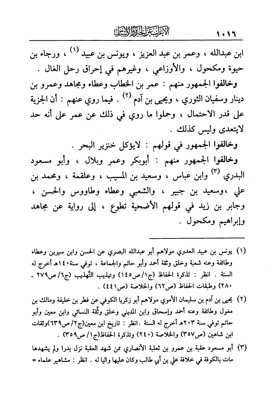 (¬٢) يحيى بن آدم بن سليمان الأموي مولاهم أبو زكريا الكوفي عن فطر بن خليفة ومالك بن مغول وطائفة وعنه أحمد وإسحاق وابن المديني وخلق وثَّقة النسائي وابن معين وأبو حاتم توفي سنة ٢٠٣ هـ أخرج له الستة. انظر: تاريخ ابن معين (ج ٢/ ص ٦٣٩) وثقات ابن شاهين (ص ٣٥٧) والخلاصة (٢٤٠) وتذكرة الحفاظ (ج ١/ ص ٣٥٩).