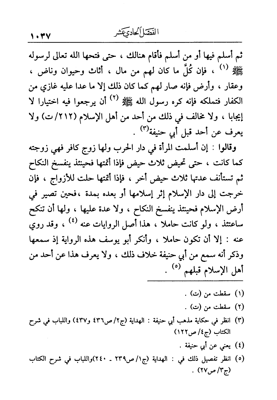 (¬٥) انظر تفصيل ذلك في: الهداية (ج ١ / ص ٢٣٩ - ٢٤٠) واللباب في شرح الكتاب (ج ٣/ ص ٢٧).