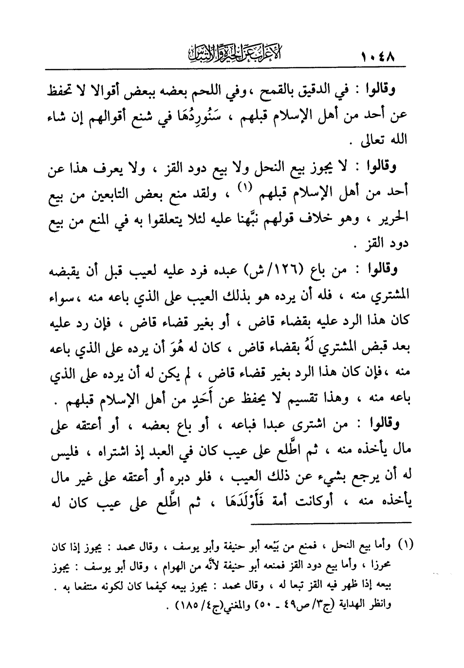 (¬١) وأما بيع النحل، فمنع من بَيْعه أبو حنيفة وأبو يوسف، وقال محمد: يجوز إذا كان محرزا، وأما بيع دود القز فمنعه أبو حنيفة لأنَّه من الهوام، وقال أبو يوسف: يجوز بيعه إذا ظهر فيه القز تبعا له، وقال محمد: يجوز بيعه كيفما كان لكونه منتفعا به. وانظر الهداية (ج ٣/ ص ٤٩ - ٥٠) والمغني (ج ٤/ ١٨٥).