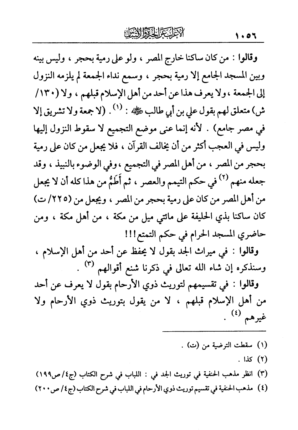 (¬٤) مذهب الحنفية في تقسيم توريث ذوي الأرحام في اللباب في شرح الكتاب (ج ٤/ ص ٢٠٠).