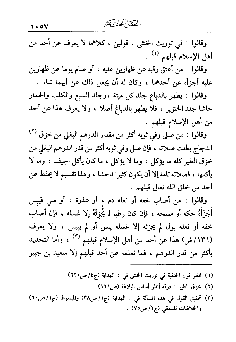 (¬٣) تحقيق القول في هذه المسألة في: الهداية (ج ١/ ص ٣٨) والمبسوط (ج ١/ ص ٦٠) والخلافيات للبيهقي (ج ٢/ ص ٧٥).