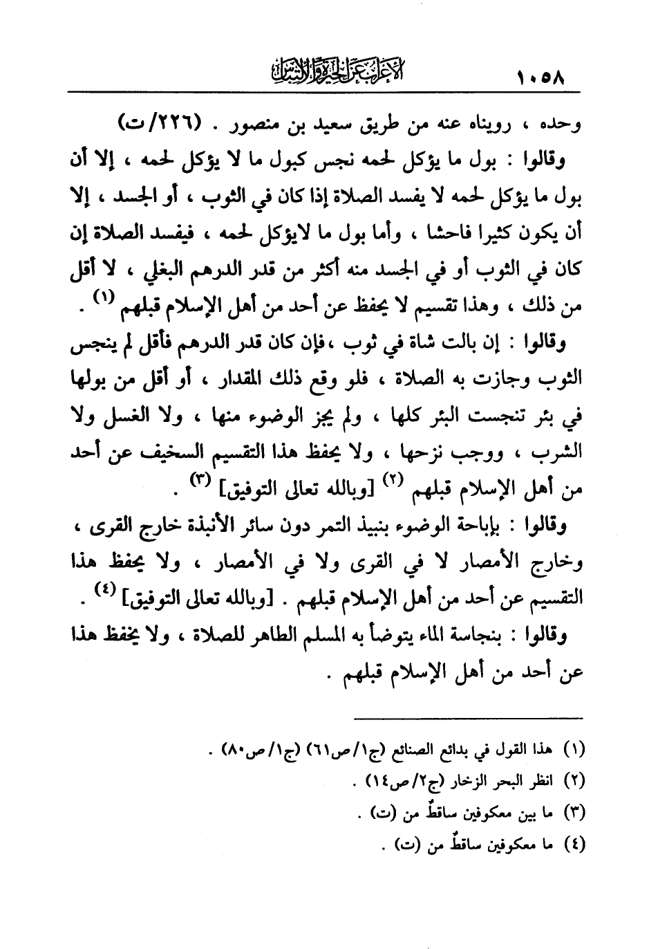 (¬١) هذا القول في بدائع الصنائع (ج ١/ ص ٦١) (ج ١/ ص ٨٠).