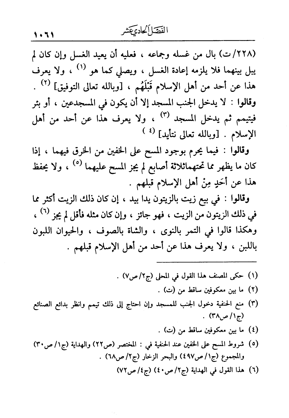 (¬٥) شروط المسح على الخفين عند الحنفية في: المختصر (ص ٢٢) والهداية (ج ١/ ص ٣٠) والمجموع (ج ١/ ص ٤٩٧) والبحر الزخار (ج ٢/ ص ٦٨).