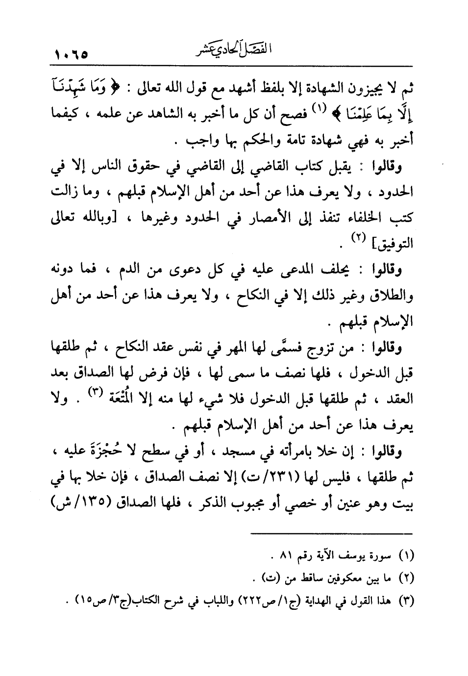 (¬٣) هذا القول في الهداية (ج ١/ ص ٢٢٢) واللباب في شرح الكتاب (ج ٣/ ص ١٥).