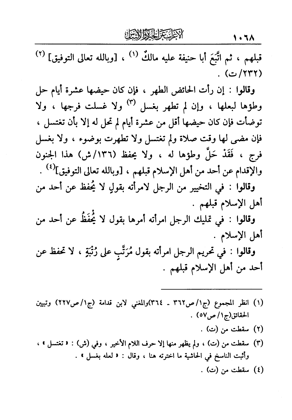 (¬١) انظر المجموع (ج ١ / ص ٣٦٢ - ٣٦٤) والمغني لابن قدامة (ج ١/ ص ٢٢٧) وتبيين الحقائق (ج ١ / ص ٥٧).
