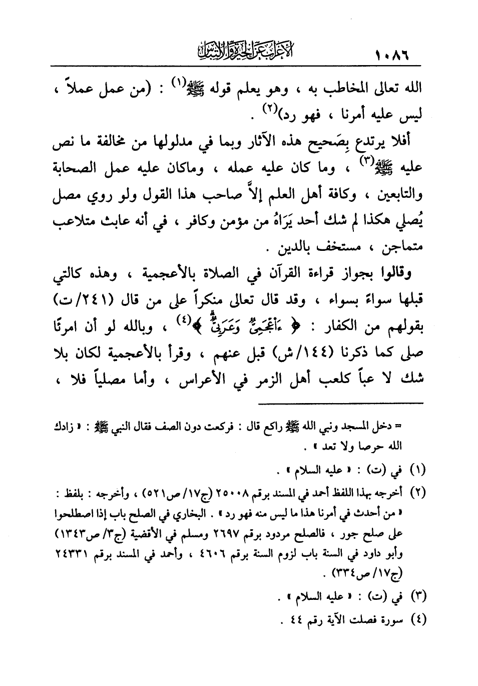 (¬٤) سورة فصلت الآية رقم ٤٤.