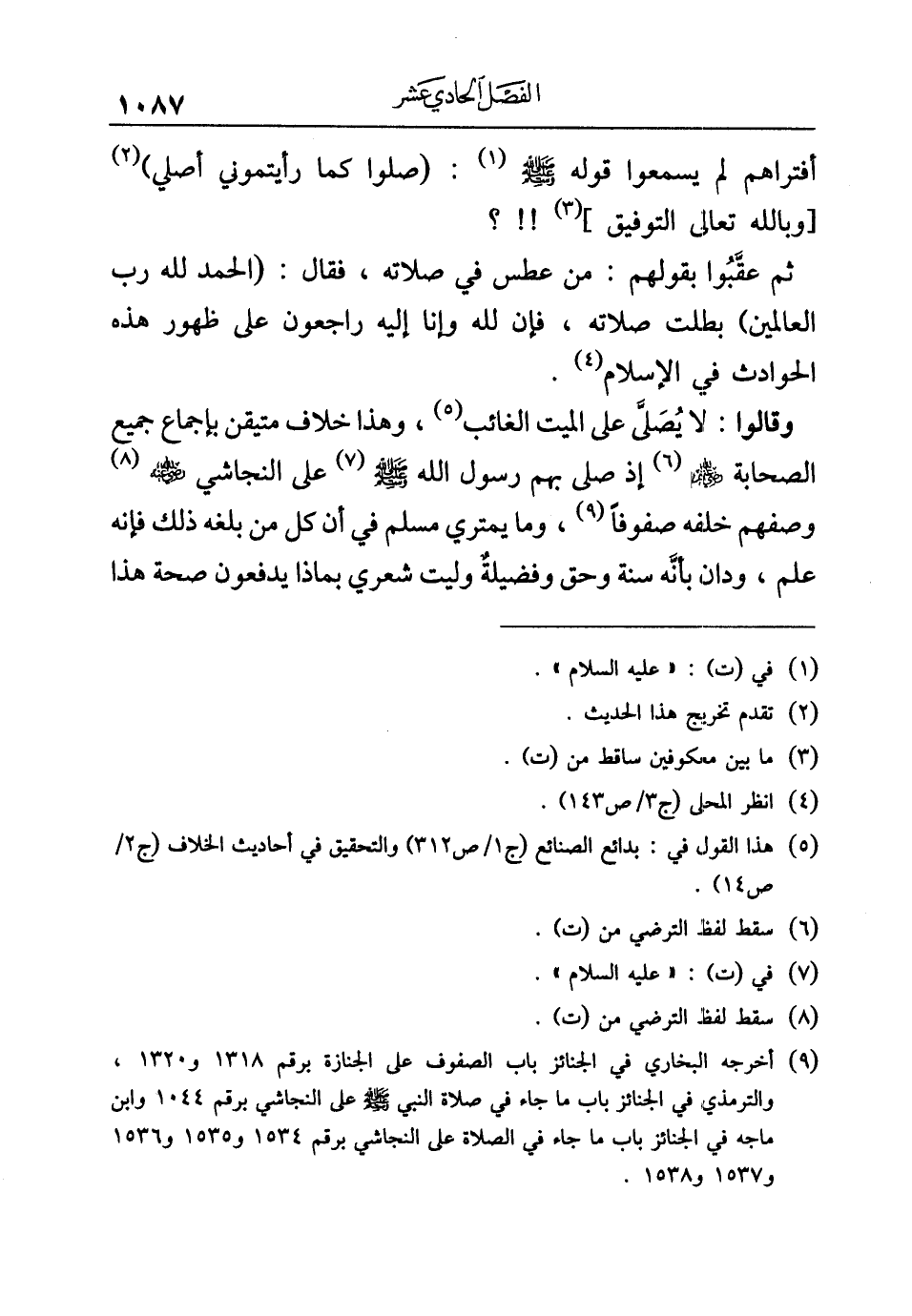 (¬٩) أخرجه البخاري في الجنائز باب الصفوف على الجنازة برقم ١٣١٨ و ١٣٢٠، والترمذي في الجنائز باب ما جاء في صلاة النبي -صلى الله عليه وسلم- على النجاشي برقم ١٠٤٤ وابن ماجه في الجنائز باب ما جاء في الصلاة على النجاشي برقم ١٥٣٤ و ١٥٣٥ و ١٥٣٦ و ١٥٣٧ و ١٥٣٨.