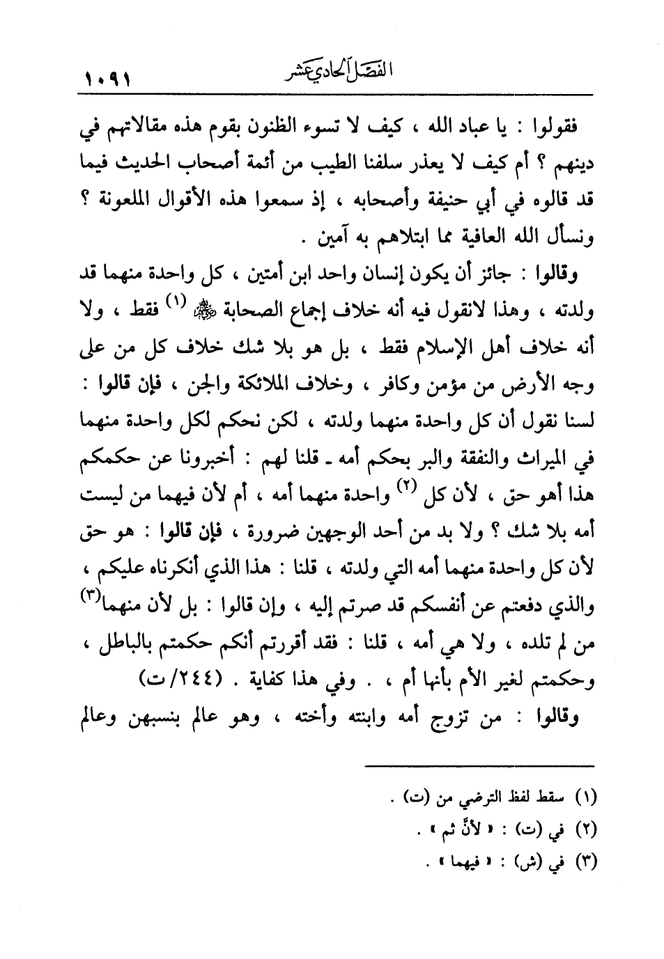 وقالوا: جائز أن يكون إنسان واحد ابن أمتين، كل واحدة منهما قد ولدته، وهذا لا نقول فيه أنه خلاف إجماع الصحابة -رضي الله عنهم- (¬١) فقط، ولا أنه خلاف أهل الإسلام فقط، بل هو بلا شك خلاف كل من على وجه الأرض من مؤمن وكافر، وخلاف الملائكة والجن، فإن قالوا: لسنا نقول أن كل واحدة منهما ولدته، لكن نحكم لكل واحدة منهما في الميراث والنفقة والبر بحكم أمه - قلنا لهم: أخبرونا عن حكمكم هذا أهو حق، لأن كل (¬٢) واحدة منهما أمه، أم لأن فيهما من ليست أمه بلا شك؟ ولا بد من أحد الوجهين ضرورة، فإن قالوا: هو حق لأن كل واحدة منهما أمه التي ولدته، قلنا: هذا الذي أنكرناه عليكم، والذي دفعتم عن أنفسكم قد صرتم إليه، وإن قالوا: بل لأن منهما (¬٣) من لم تلده، ولا هي أمه، قلنا: فقد أقررتم أنكم حكمتم بالباطل، وحكمتم لغير الأم بأنها أم، . وفي هذا كفاية.