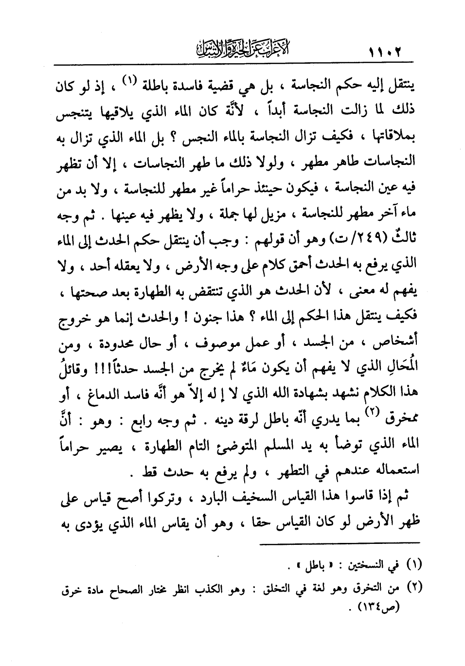 ثم إذا قاسوا هذا القياس السخيف البارد، وتركوا أصح قياس على ظهر الأرض لو كان القياس حقا، وهو أن يقاس الماء الذي يؤدى به