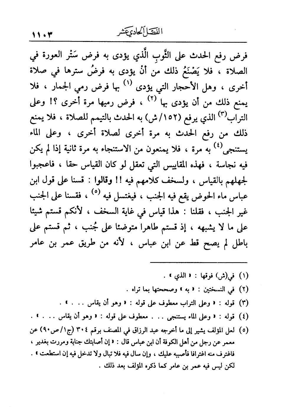 (¬٥) لعل المؤلف يشير إلى ما أخرجه عبد الرزاق في المصنف برقم ٣٠٤ (ج ١/ ص ٩٠) عن معمر عن رجل من أهل الكوفة أن ابن عباس قال: "إن أصابتك جنابة ومررت بغدير، فاغترف منه اغترافا فأصببه عليك، وإن سال فيه فلا تبال ولا تدخل فيه إن استطعت". لكن ليس فيه عمر بن عامر كما ذكره المؤلف بعد ذلك.