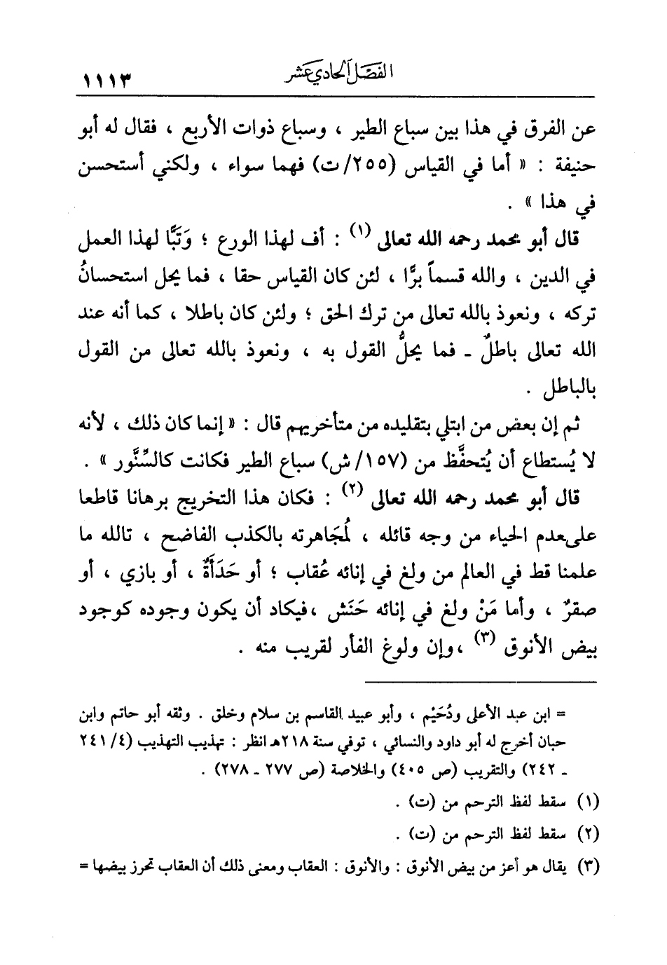 عن الفرق في هذا بين سباع الطير، وسباع ذوات الأربع، فقال له أبو حنيفة: "أما في القياس فهما سواء، ولكني أستحسن في هذا".