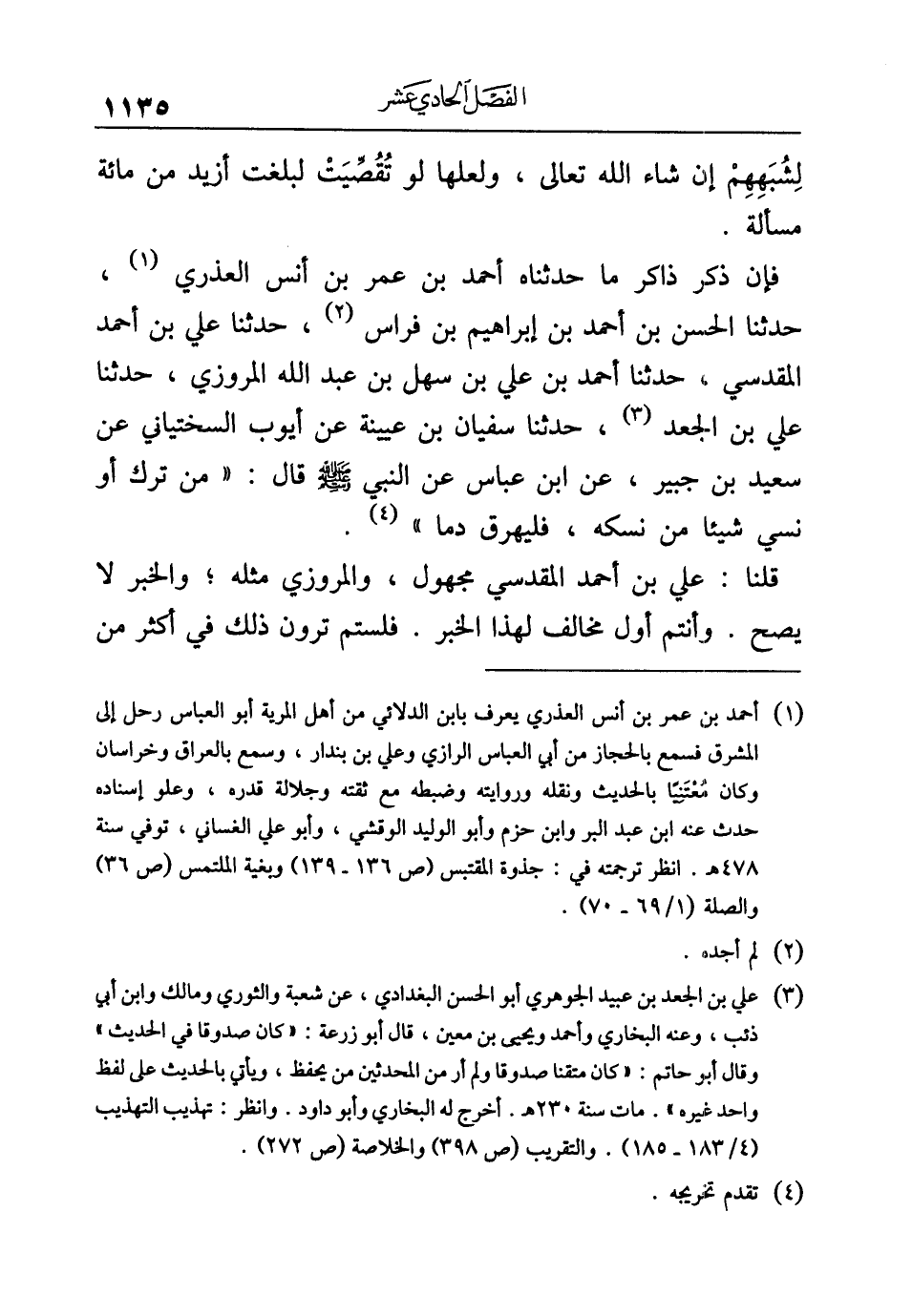 فإن ذكر ذاكر ما حدثناه أحمد بن عمر بن أنس العذري (¬١)، حدثنا الحسن بن أحمد بن إبراهيم بن فراس (¬٢)، حدثنا علي بن أحمد المقدسي، حدثنا أحمد بن علي بن سهل بن عبد الله المروزي، حدثنا علي بن الجعد (¬٣)، حدثنا سفيان بن عيينة عن أيوب السختياني عن سعيد بن جبير، عن ابن عباس عن النبي -صلى الله عليه وسلم- قال: "من ترك أو نسي شيئا من نسكه، فليهرق دما" (¬٤).
