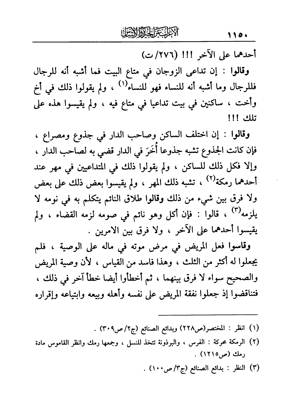 (¬٣) انظر: بدائع الصنائع (ج ٣/ ص ١٠٠).