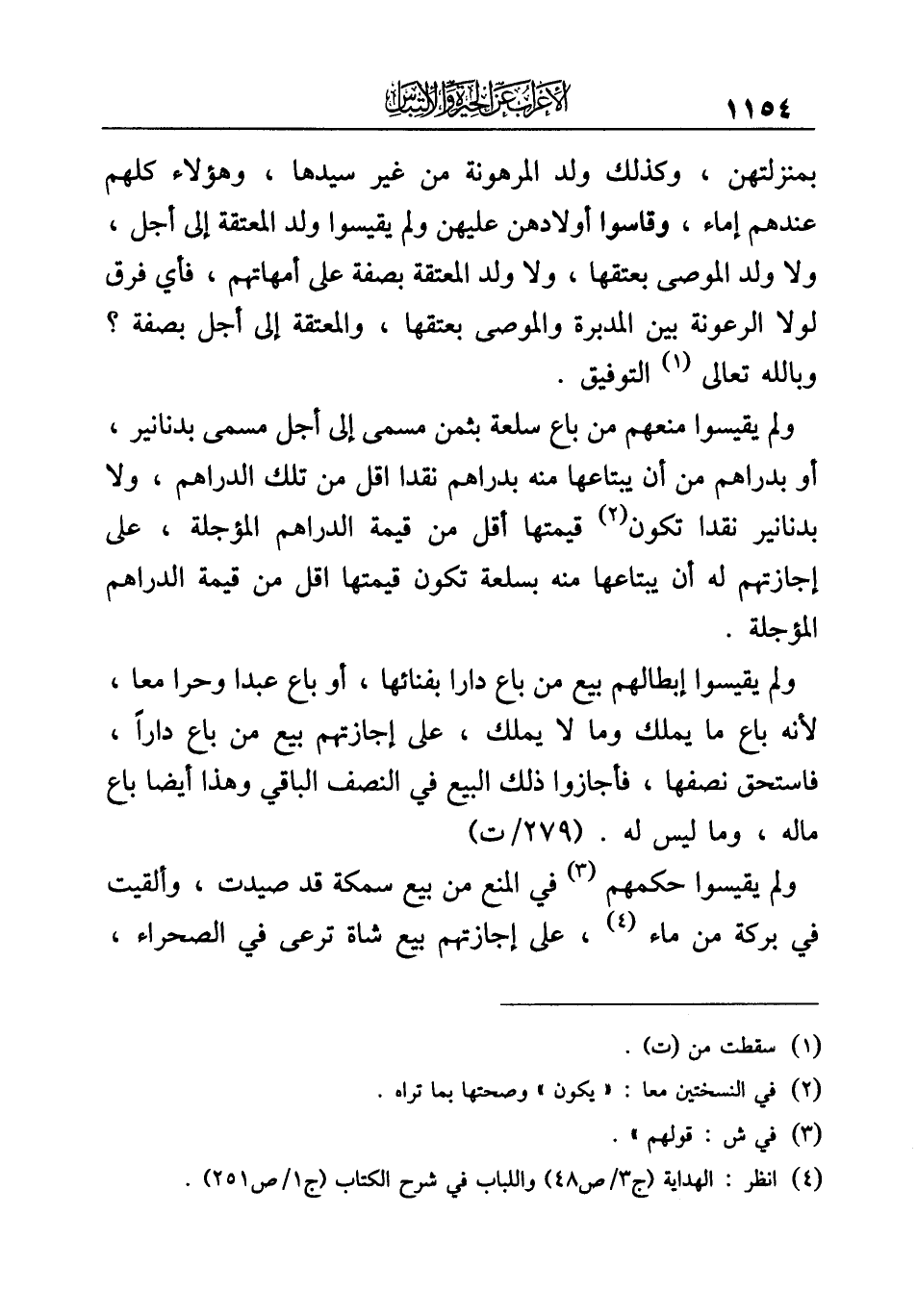 (¬٤) انظر: الهداية (ج ٣/ ص ٤٨) واللباب في شرح الكتاب (ج ١/ ص ٢٥١).