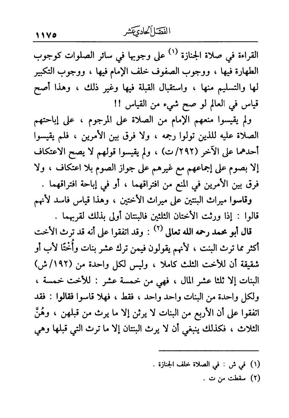 القراءة في صلاة الجنازة (¬١) على وجوبها في سائر الصلوات كوجوب الطهارة فيها، ووجوب الصفوف خلف الإمام فيها، ووجوب التكبير لها والتسليم منها، واستقبال القبلة فيها وغير ذلك، وهذا أصح قياس في العالم لو صح شيء من القياس! !