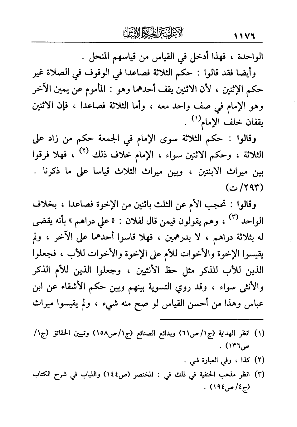 (¬٣) انظر مذهب الحنفية في ذلك في: المختصر (ص ١٤٤) واللباب في شرح الكتاب (ج ٤/ ص ١٩٤).