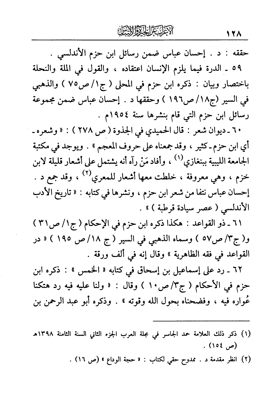 ¬حققه: د. إحسان عباس ضمن رسائل ابن حزم الأندلسي.