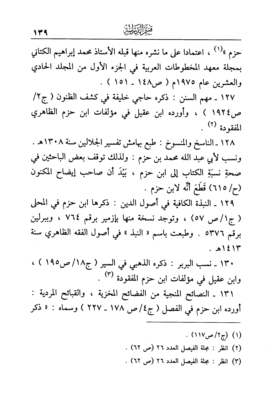¬حزم" (¬١)، اعتمادا على ما نشره منها قبله الأستاذ محمد إبراهيم الكتاني بمجلة معهد المخطوطات العربية في الجزء الأول من المجلد الحادي والعشرين عام ١٩٧٥ م (ص ١٤٨ - ١٥١).