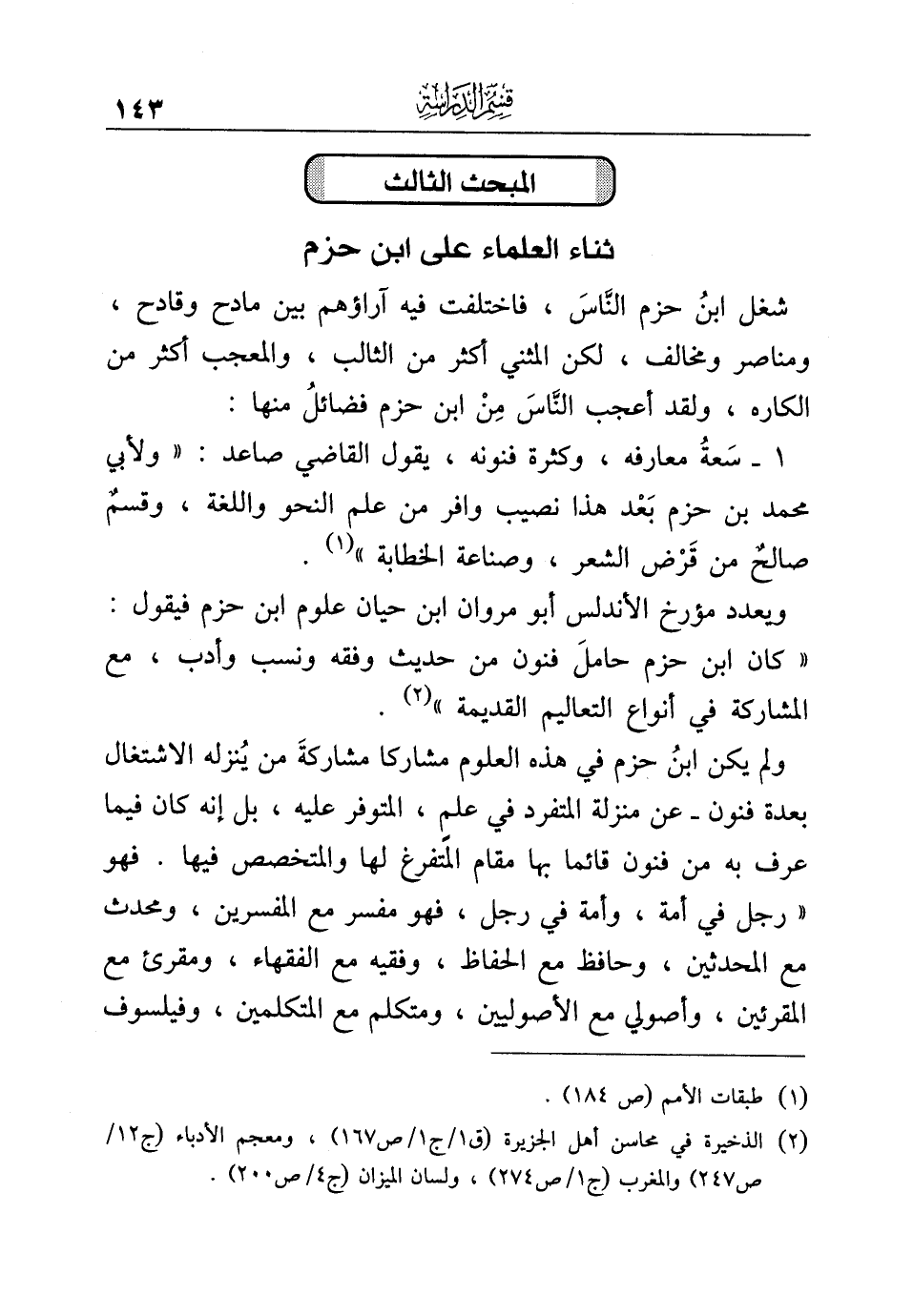 ¬المبحث الثالث ثناء العلماء على ابن حزم