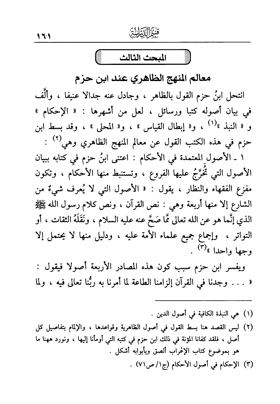 (¬٢) ليس القصد هنا بسط القول في أصول الظاهرية وقواعدها، والإلمام تفاصيل كل