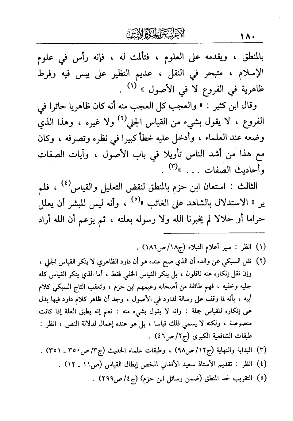 (¬٤) انظر: تقديم الأستاذ سعيد الأفغاني لملخص إبطال القياس (ص ١١ - ١٢).