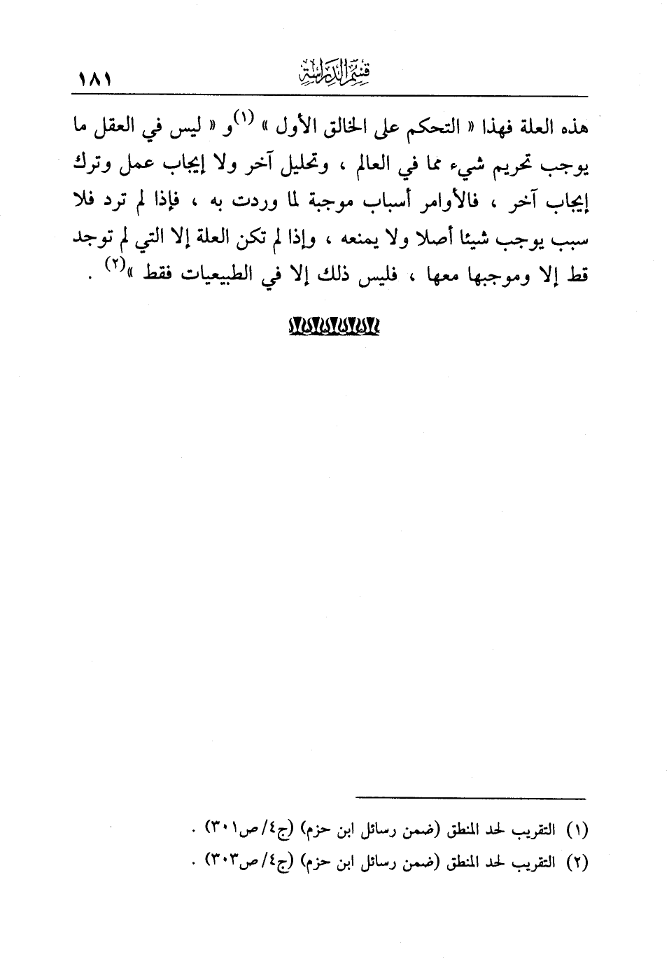 (¬٢) التقريب لحد المنطق (ضمن رسائل ابن حزم) (ج ٤/ ص ٣٠٣).