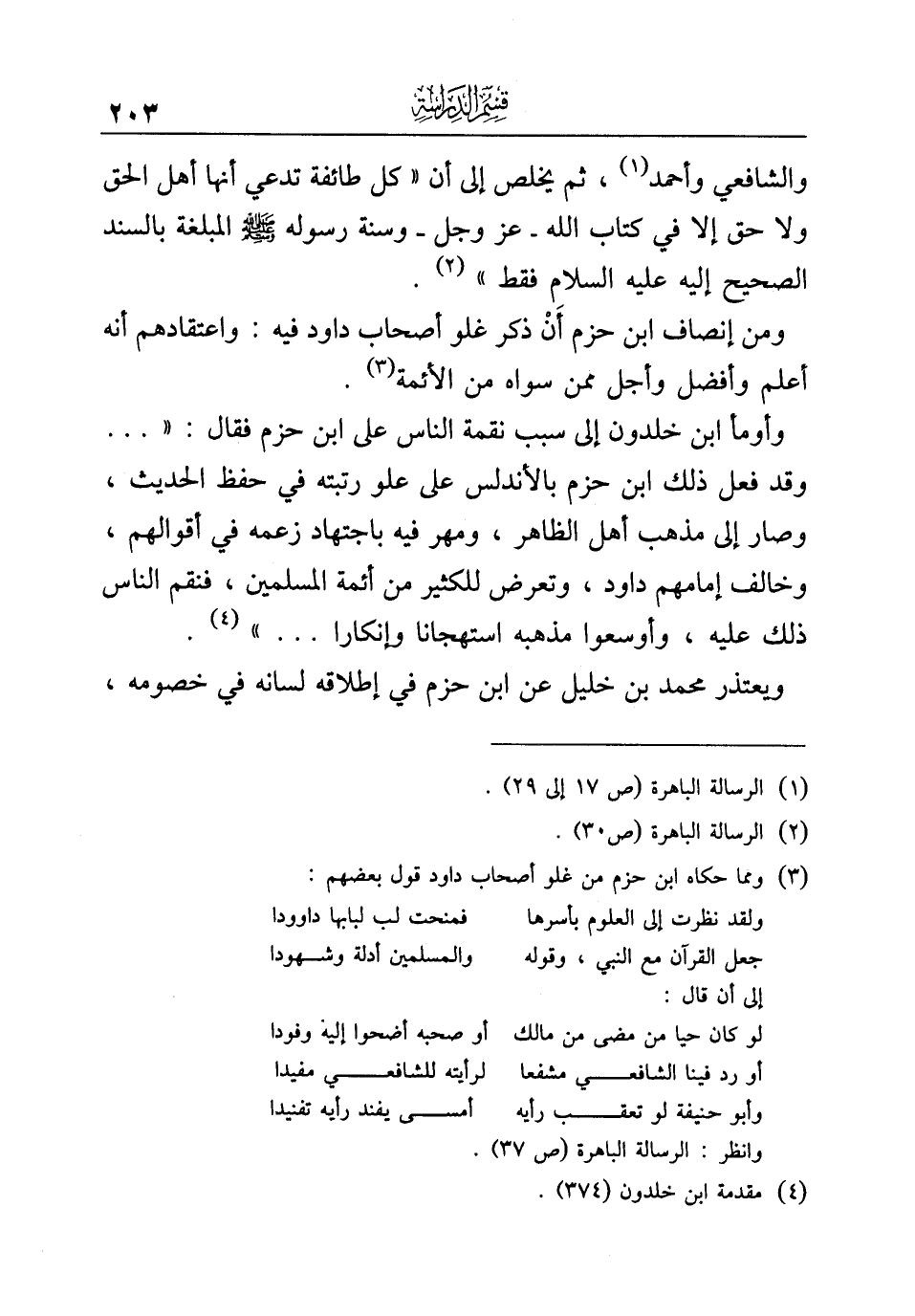 ومن إنصاف ابن حزم أَنْ ذكر غلو أصحاب داود فيه: واعتقادهم أنه أعلم وأفضل وأجل ممن سواه من الأئمة (¬٣).