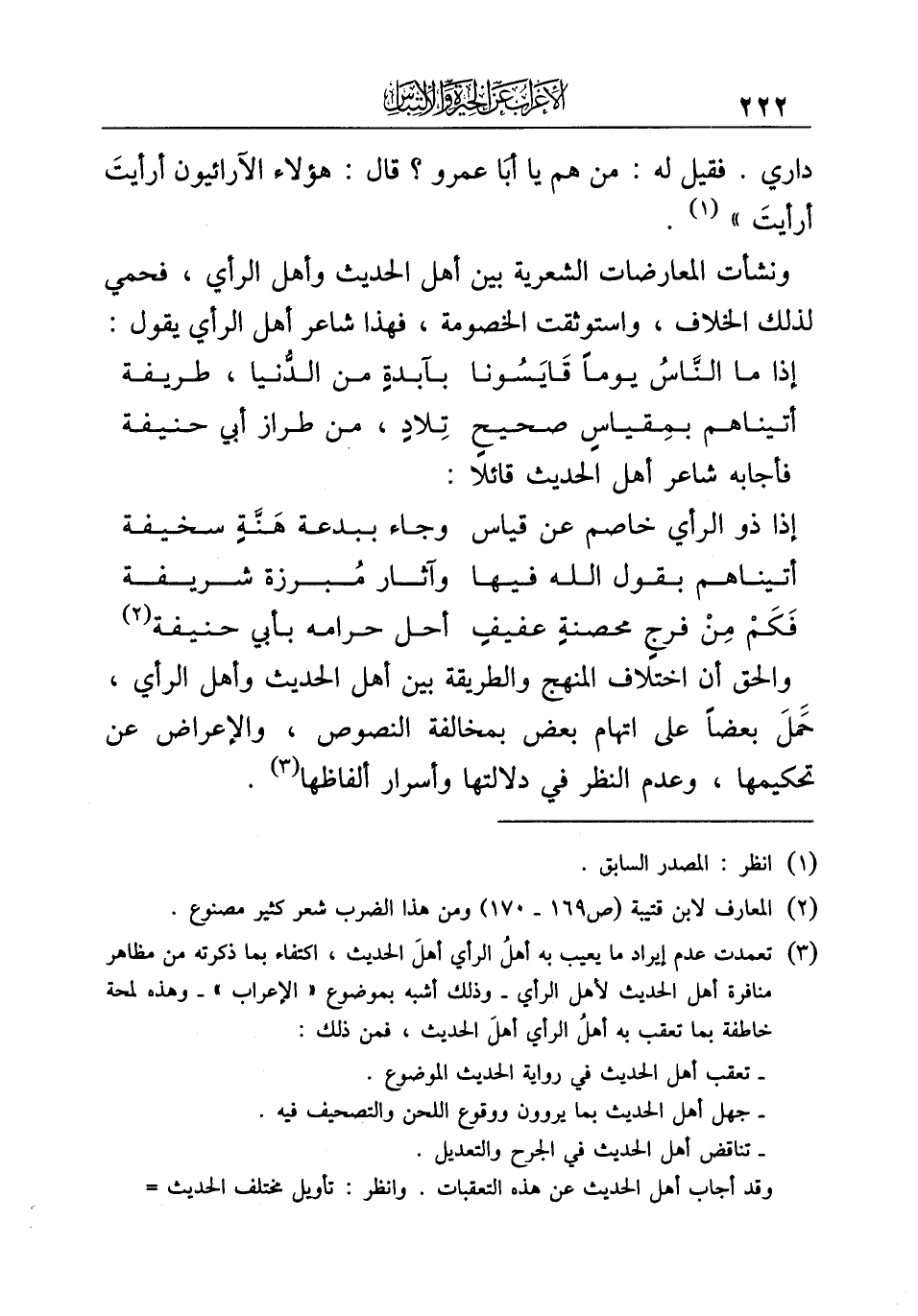¬داري. فقيل له: من هم يا أبَا عمرو؟ قال: هؤلاء الآرائيون أرأيتَ أرأيتَ" (¬١).