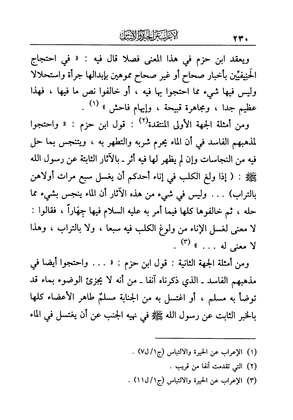¬ويعقد ابن حزم في هذا المعنى فصلا قال فيه: "في احتجاج الحَنِيفيِّين بأخبار صحاح أو غير صحاح مموهين بإبدالها جرأة واستحلالا وليس فيها شيء مما احتجوا بها فيه، أو خالفوا نص ما فيها، فهذا عظيم جدا، ومجاهرة قبيحة، وإيهام فاحش" (¬١).