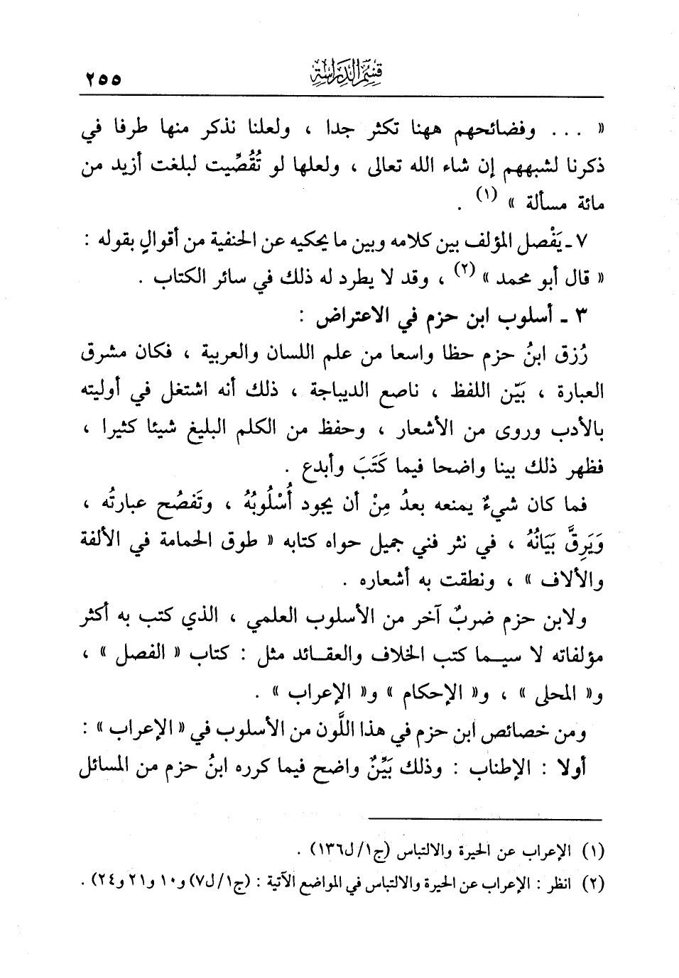 أولا: الإطناب: وذلك بَيِّنٌ واضح فيما كرره ابنُ حزم من المسائل