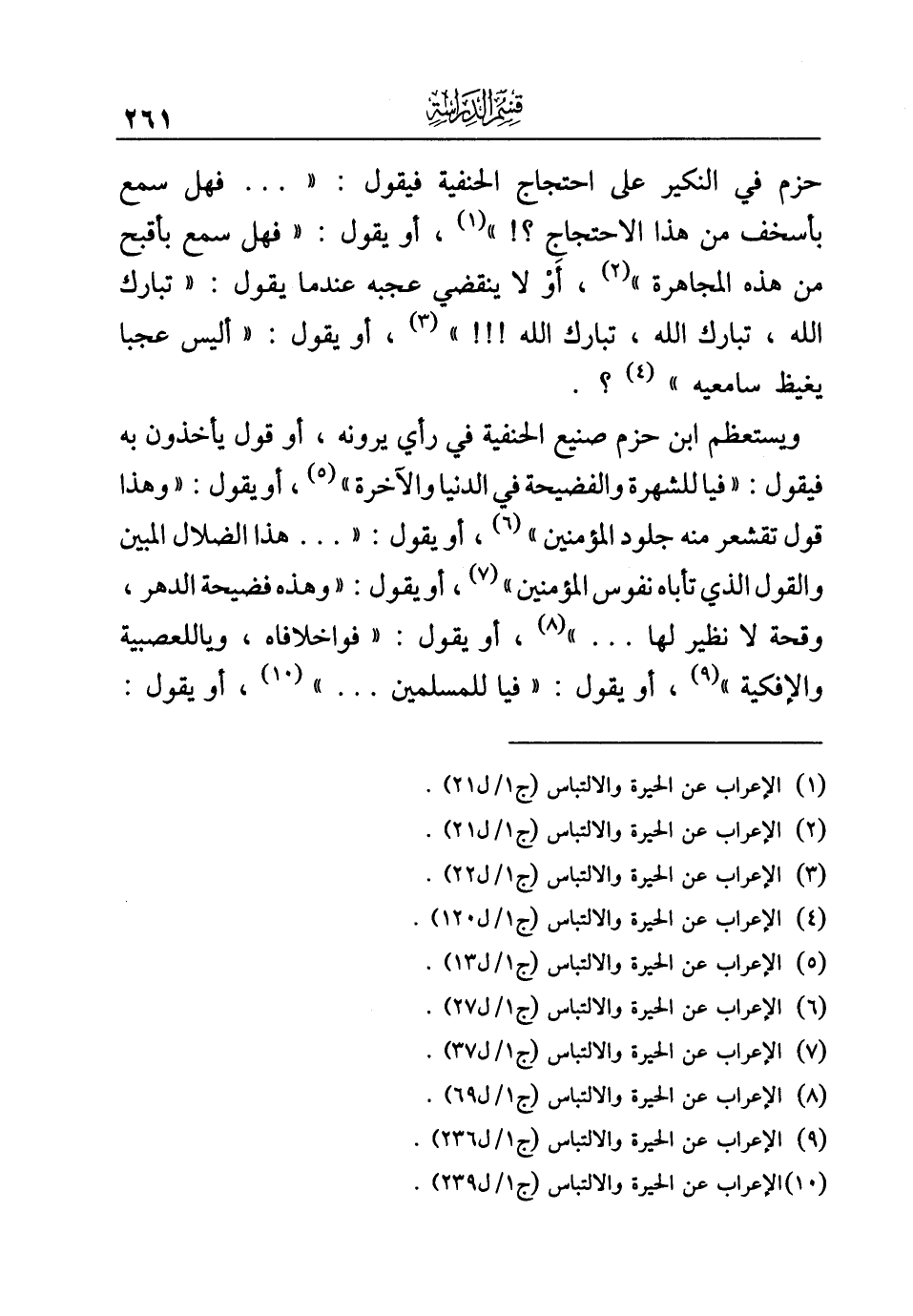 (¬١٠) الإعراب عن الحيرة والالتباس (ج ١/ ل ٢٣٩).