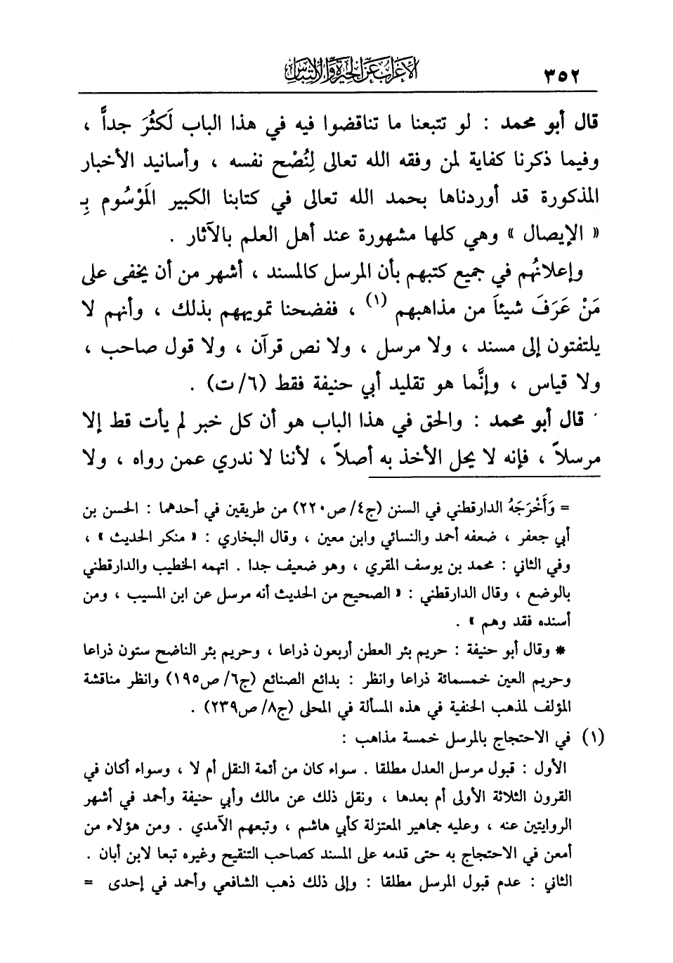 (¬١) في الاحتجاج بالمرسل خمسة مذاهب: