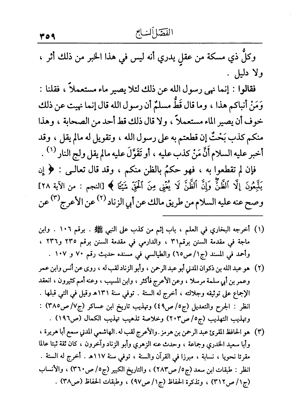 فإن لم تقطعوا به، فهو حكمُ بالظن منكم، وقد قال تعالى: {إِنْ يَتَّبِعُونَ إِلَّا الظَّنَّ وَإِنَّ الظَّنَّ لَا يُغْنِي مِنَ الْحَقِّ شَيْئًا} [النجم: من الآية ٢٨] وصح عنه عليه السلام من طريق مالك عن أبي الزناد (¬٢) عن الأعرج (¬٣) عن