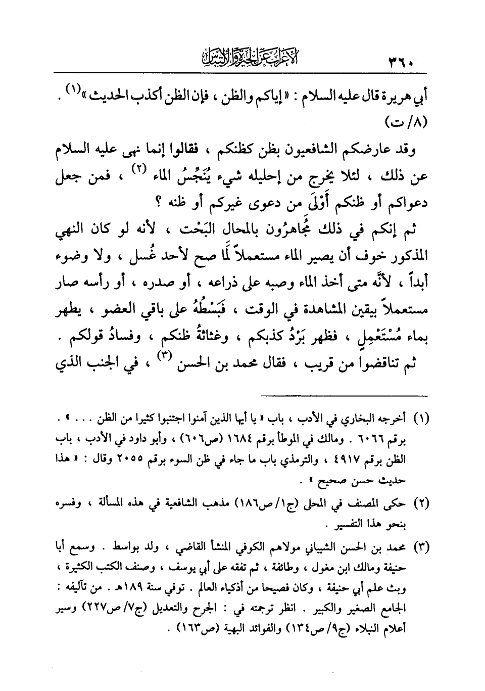 (¬٢) حكى المصنف في المحلى (ج ١/ ص ١٨٦) مذهب الشافعية في هذه المسألة، وفسره بنحو هذا التفسير.